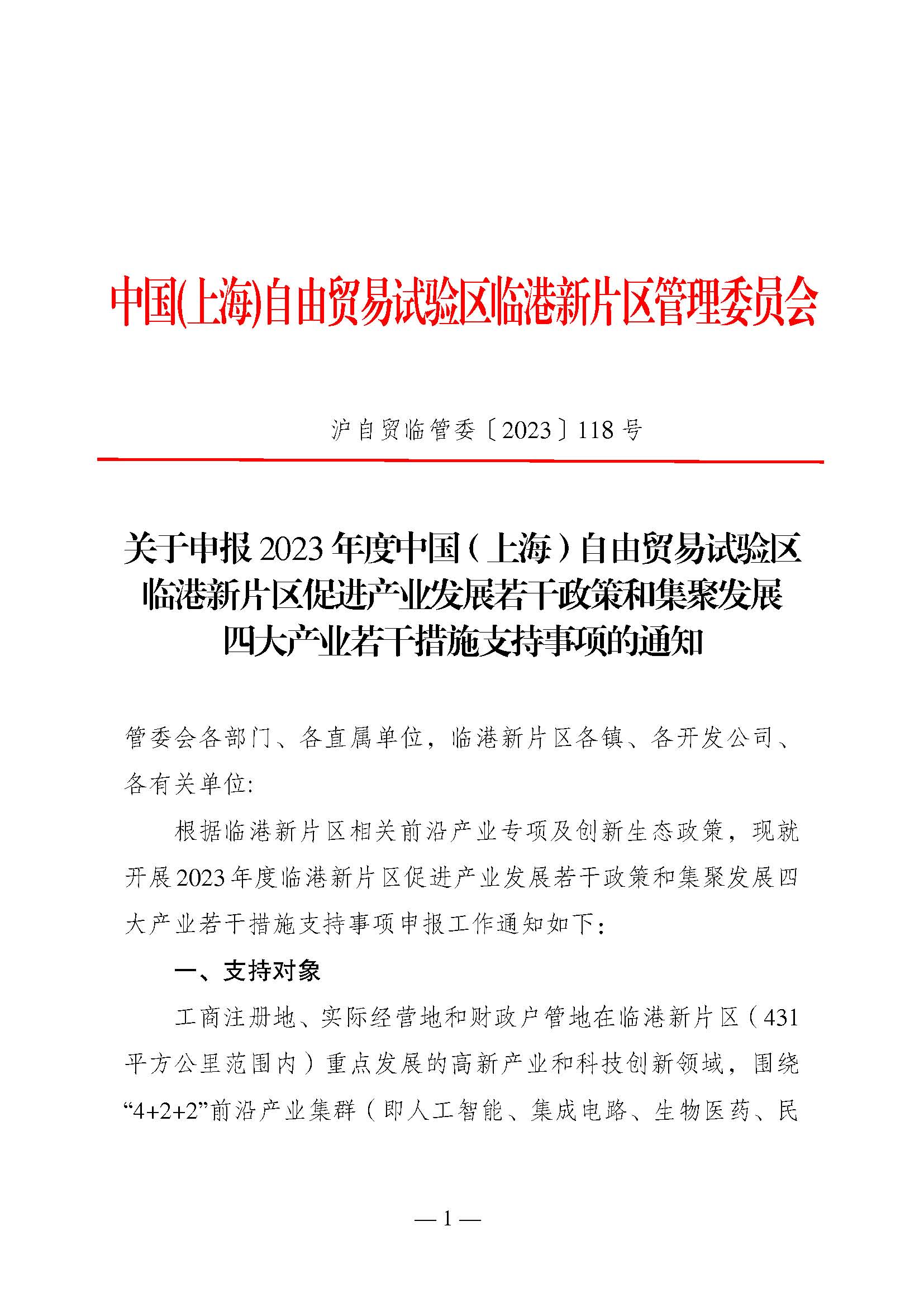 滬自貿(mào)臨管委〔2023〕118號